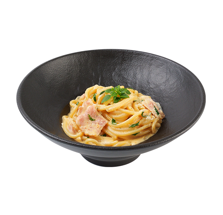 Классическая римская паста с беконом, сливочно-яичным соусом, луком и пармезаном