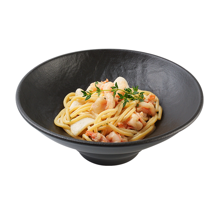 С креветками и кальмаром в сливочно-устричном соусе с репчатым луком и чесноком