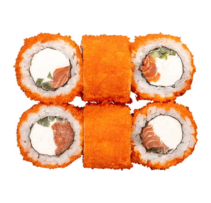 Копчёный лосось, сливочный сыр, огурец, икра масаго