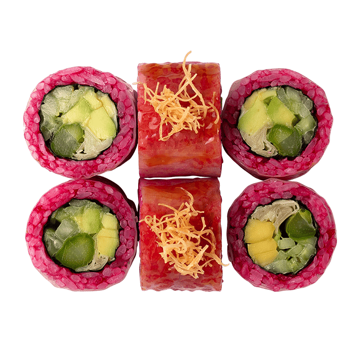 Авокадо, спаржа, тесто катаифи, рисовая бумага, соусы терияки и медово-горчичный
