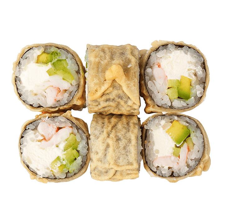 Креветки, сливочный сыр, авокадо, огурец, кляр