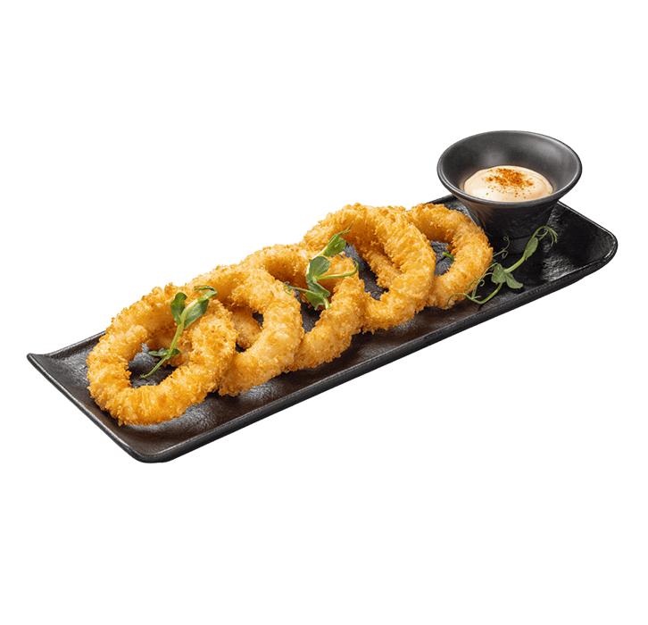 Кольца кальмара в хрустящей панировке. Подаются с соусом фрай